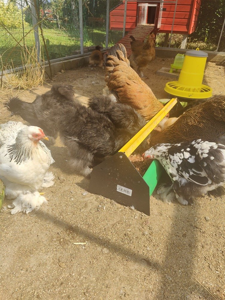 Mój wybór padł na plastikowe, długie korytko, z uchwytem, który uniemożliwia kurkom siadanie w nim i brudzenie jedzenia. Uchwyt jest obrotowy w wielu modelach, więc kura, która jest cwana i siada na nim zjedzie. Mam kochinkę, która zawsze próbuje ładować się do michy – na szczęście moje korytko jest na nią odporne.